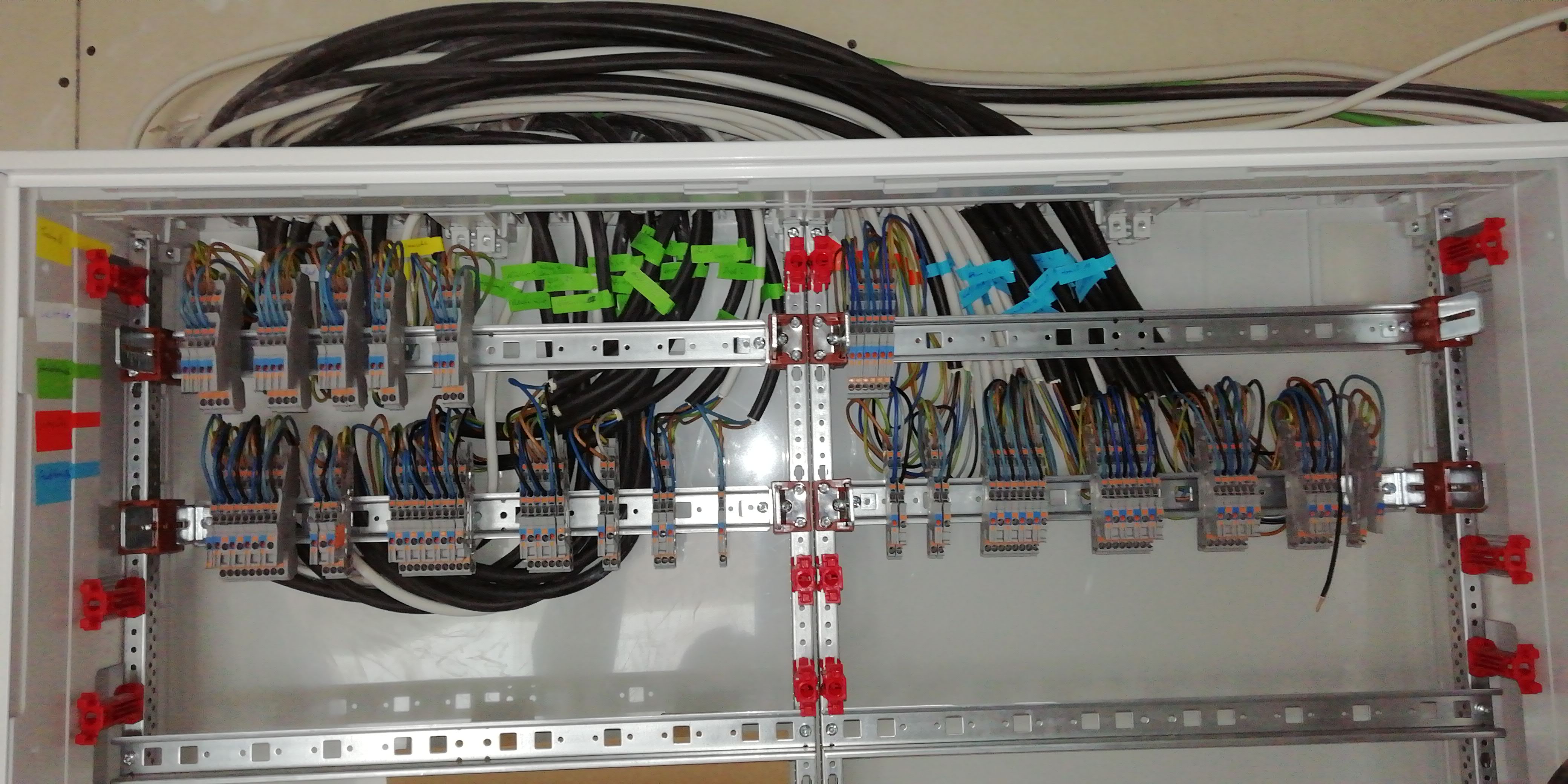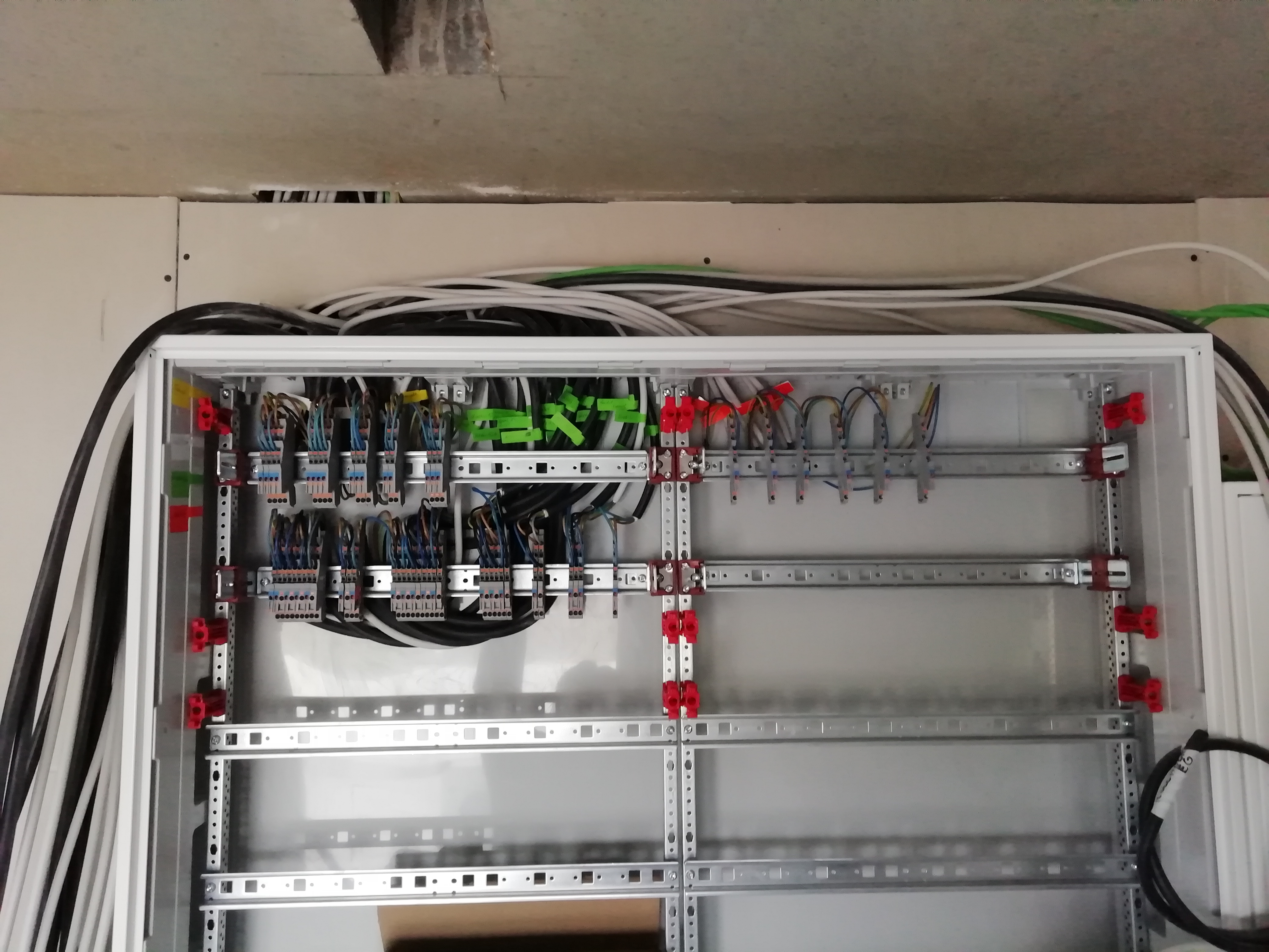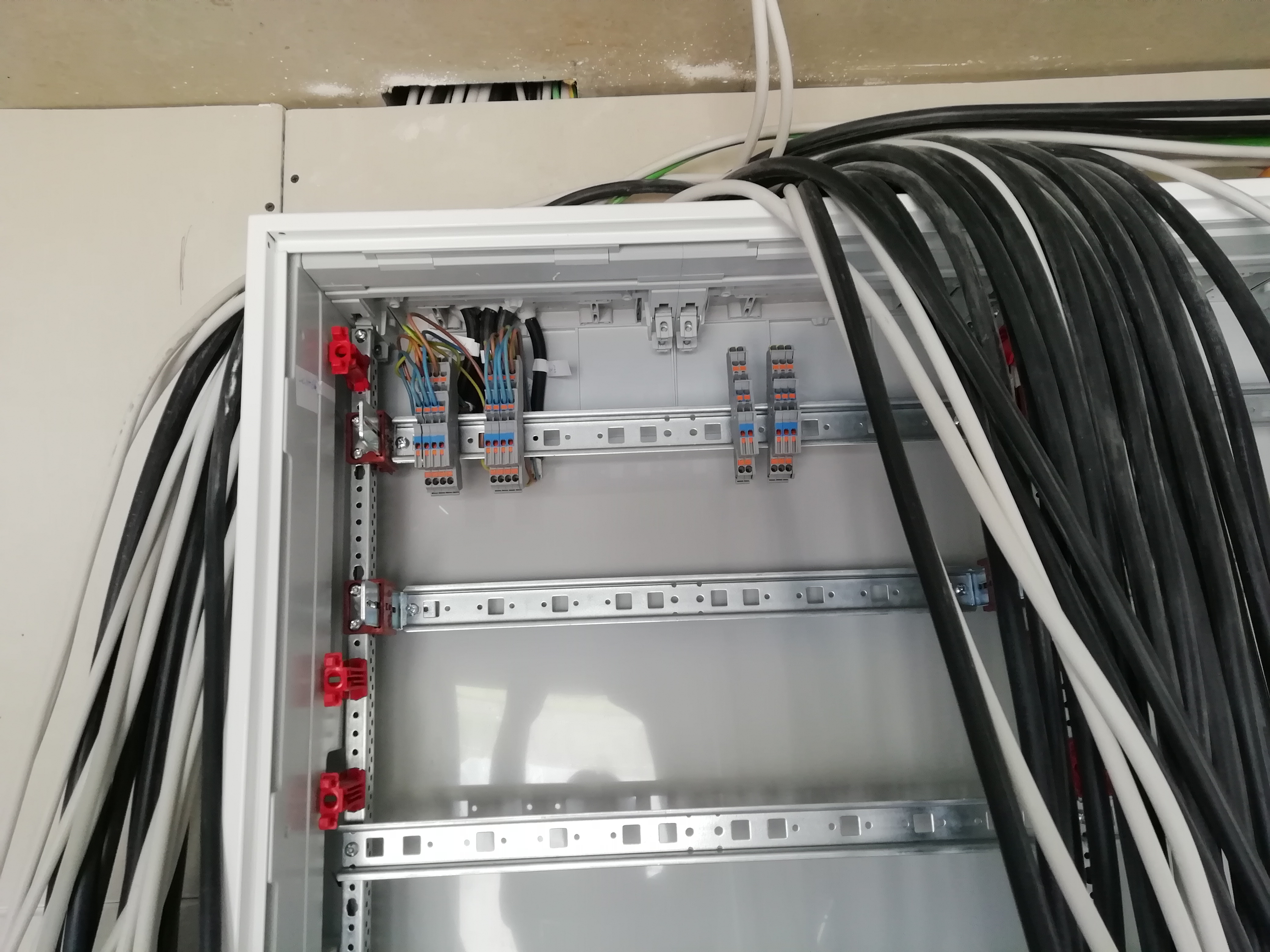 - Ich habe den Kabelbaum für unsere Elektroverteilung gestutzt und auf Reihenklemmen im Verteiler aufgelegt.