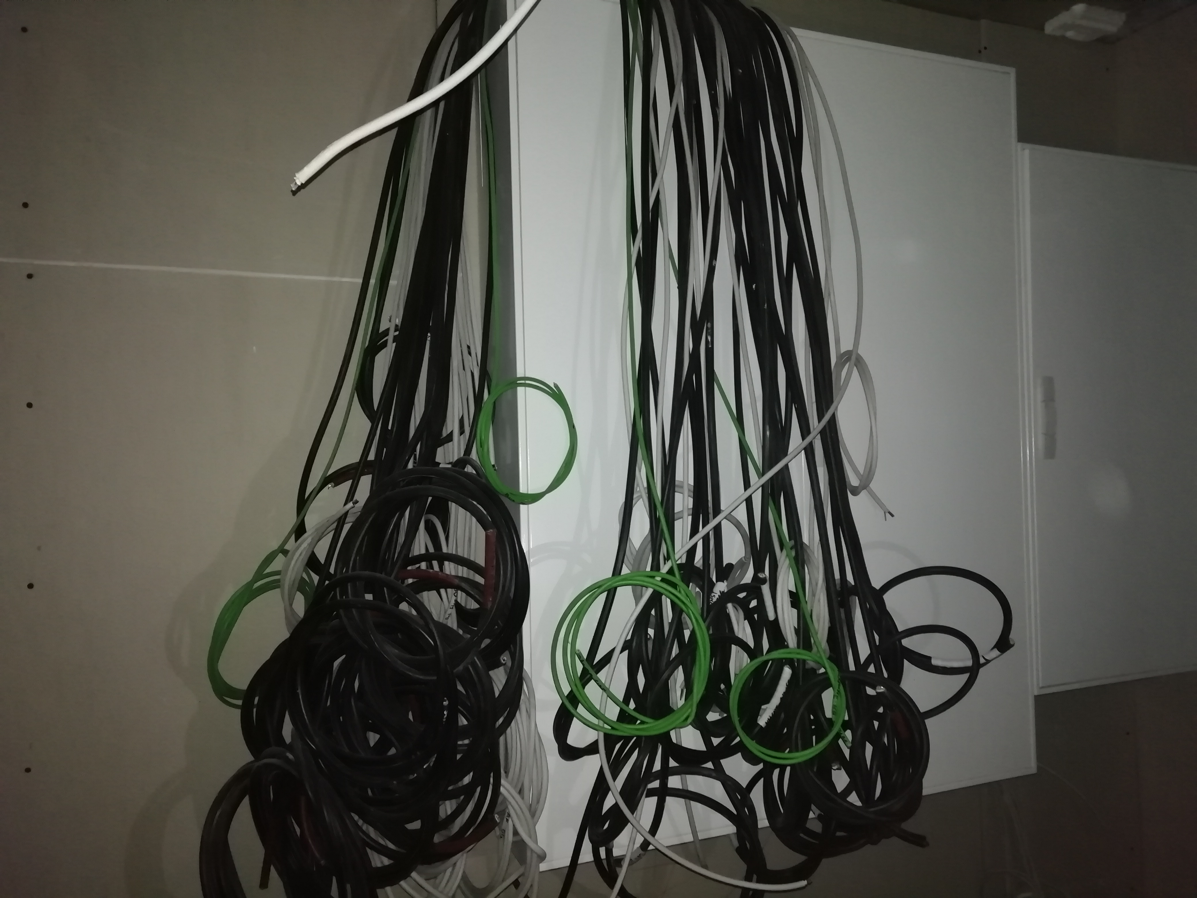 Nach einem anstrengenden Donnerstag hatte ich die Kabel des EG endlich heraussortiert, eingefädelt, beschriftet, entmantelt, abisoliert und aufgelegt. Obwohl ich mich ca. 6h ausschließlich in unserem 7m² großen Hausanschlussraum (in dem ja auch schon die Heizung stand) und hier auch vornehmlich auf der Klappleiter aufgehalten habe, gratulierte mir mein Handy bei Antritt der Heimfahrt zu einem sportlich erfolgreichen Tag mit 13.600 Schritten.